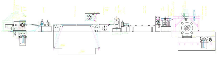 Cette ligne de refendage de plaque autrement appele refendeur de bobine de metal est capable de refendre de grandes bobines de metaux epaisses en petites bobines. Cette ligne est composee de: une voiture de chargement de la bobine, un derouleur a mandrin unique, un guide de la tete de bobine, un equipement de pressage et de pelletage, un rouleau de pincement d'alimentation et une machine de nivelage, un accumulateur de trou, un guide lateral, une machine de nivellement fin et une machine de fixage de la longueur, une machine de tondage mecanique pneumatique, une ceinture de livraison, un tasseau d'empilage, une table d'elevation, un systeme hydraulique et un systeme de controle electrique.
